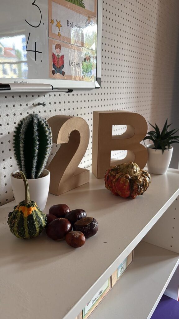 Zum Start in den Herbst haben die Kinder der 2b Klasse ihre Kreativität gezeigt: Als Hausaufgabe gestalteten sie wunderschöne Herbstdekorationen. Mit Kastanien, Kürbissen, Blättern und vielen weiteren Naturmaterialien entstanden fantasievolle Kunstwerke, die nun das Klassenzimmer schmücken. Ob bemalte Kürbisse, gebastelte Tiere oder herbstliche Fensterbilder – die Ergebnisse können sich sehen lassen und bringen herbstliche Stimmung in unsere Schule!